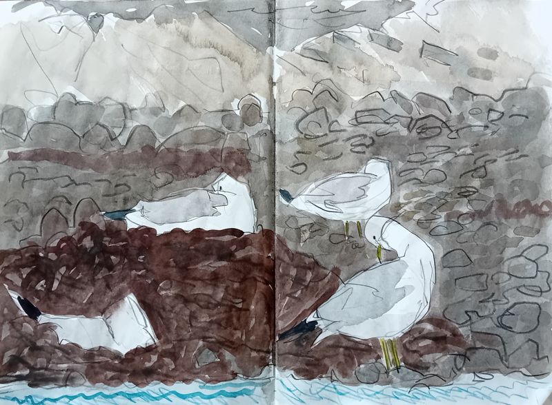 I have spent some of the winter and early spring year making time for some drawing. A 6 week course “Mindful Drawing” with Jo Hatty has been an opportunity to try different mediums and techniques. The Royal Drawing School’s digital studio provides online courses andworkshops. I tried “Drawing Canines”. The image above is from that event. I have even managed a couple of days at the beach in between the wind and rain!